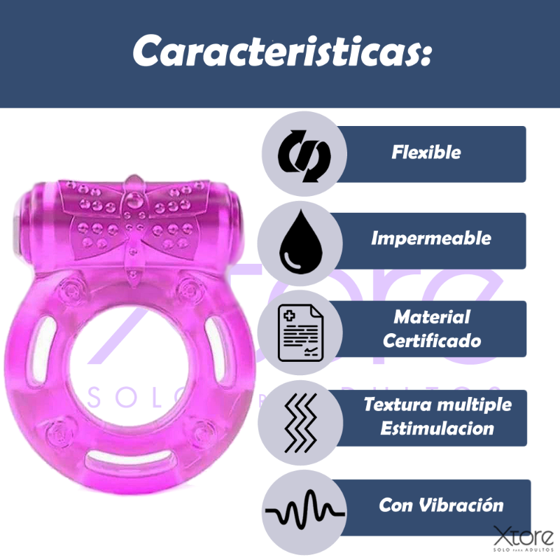 Anillo Vibrador para el pene en color morado. Bala vibradora removible.