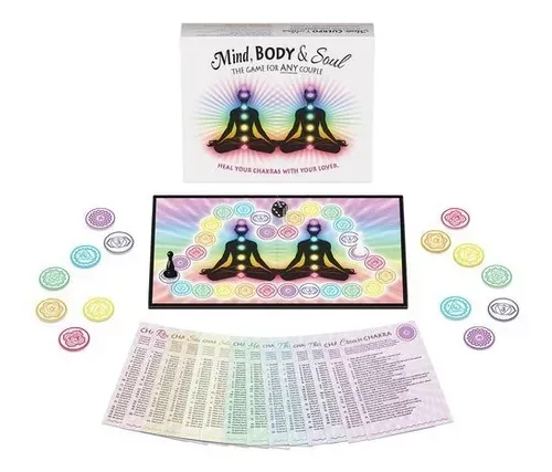 Alcanza la iluminación con este maravilloso juego de mesa, a media que se desplace por el tablero de juego, usted y su pareja se harán preguntas que han sido diseñadas para abrir sus chakras, hay 20 preguntas por tarjeta y dos juegos de tarjetas por los siete chakras para un total de 240 preguntas de sanación de chakra. Usted gana cuando alinee los siete chakras, mientras su compañero le proporcionara una recompensa.