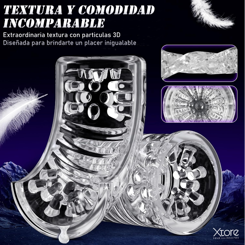 Ventana Visual y Diseño Antideslizante: Este juguete sexual para adultos tiene una ventana visual única que se mantiene clara durante el uso, permitiendo al usuario ver los movimientos internos del stroker, aportando una fuerte estimulación visual y física. La superficie de la funda del juguete sexual cuenta con texturas especiales para aumentar la fricción, asegurando un agarre firme y fácil operación con una sola mano.