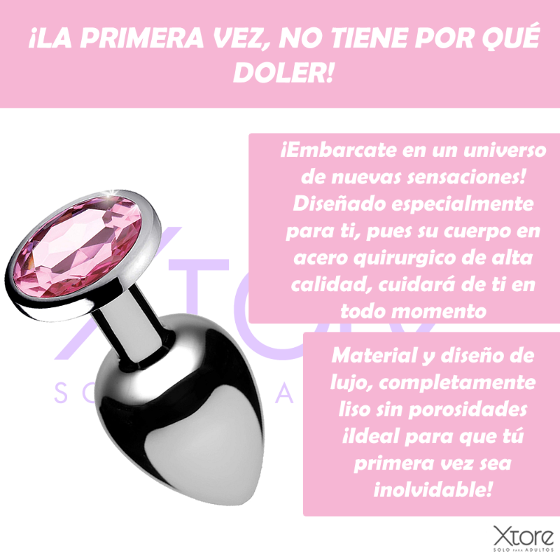modo de uso: 5 minutos antes de la penetración usa un lubricante anal para evitar el dolor (pregúntanos por el), ve insertando la punta de este dildo suavemente mientras observas como se dilata el ano y no genera dolor, la punta mide apenas 2 milímetros y se va ensanchando hasta terminar en 2.8 centímetros diámetro, su longitud total es de 7 centímetros. está elaborado en metal por lo que es muy resistente, te durará mucho tiempo y fácil de limpiar. su diseño, en la parte inferior cuenta con un cristal de color a elegir, un toque lindo para un juguete placentero.