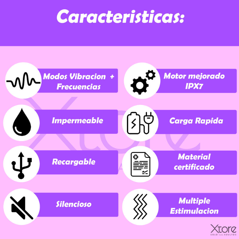 cuenta con un motor de alta tecnología el cual proporcionara una potencia inigualable , pero muy silenciosa para pasar desapercibida , tiene 16 modos de vibración para que escojas tus pulsaciones favoritas.